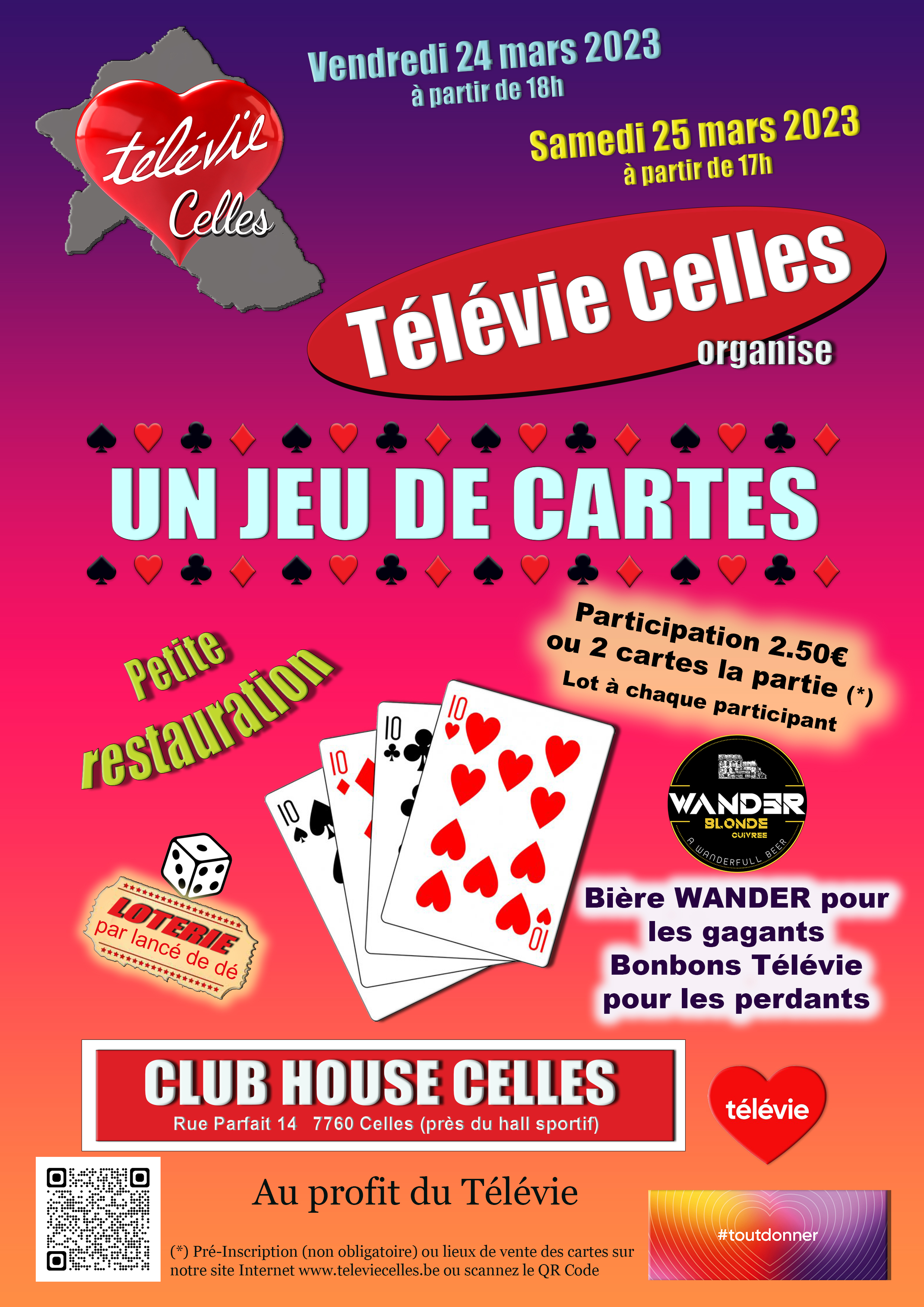 Nous organiserons au profit du Télévie un jeu de cartes (Manille) étalé sur 2 jours.