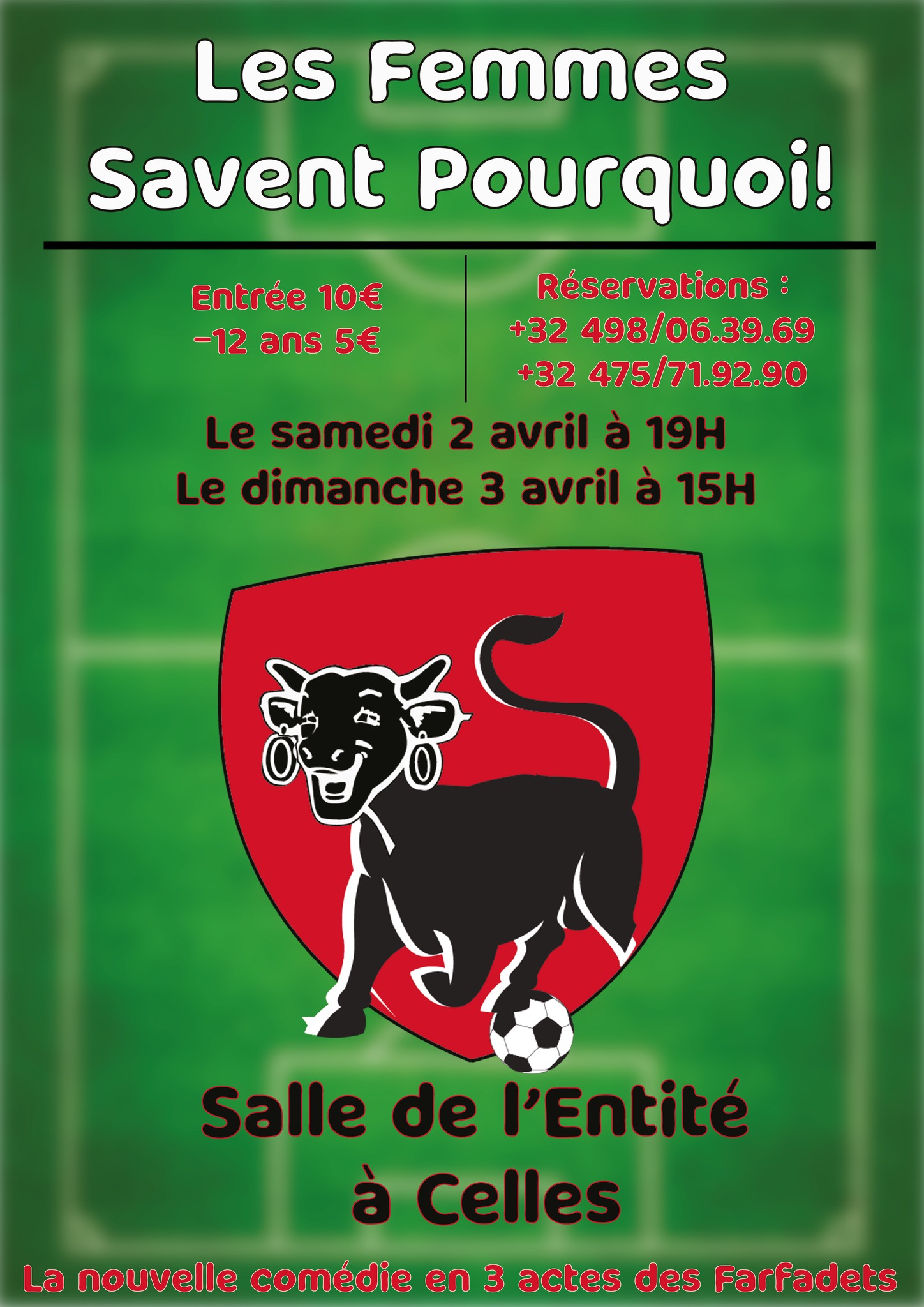 Le Théâtre des Farfadets et le club de football d'Escanaffles ont décidé d'offrir une partie du bénéfice des entrées de leurs présentations 'Les femmes savent pourquoi!' du samedi 2 avril et du dimanche 3 avril au profit du Télévie Celles.